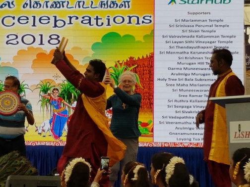 At Cambridge (good name!) we were met by our hosts for the evening’s Homestead Stay. Alison and I, together with fellow-travellers Chris and Judy, were entertained by Ron and Beth Richardson. Ron is a retired police inspector who now farms, owning and raising horses for the popular local sport of harness racing. Beth was in high hopes that their horse would win the trophy at the following Saturday’s race. We never did find out whether they succeeded. A brief tour of the farm, riding on a trailer behind the tractor; then we sat down to some real home cooking: roast lamb with, I think Alison counted 8 or 9 vegetables.