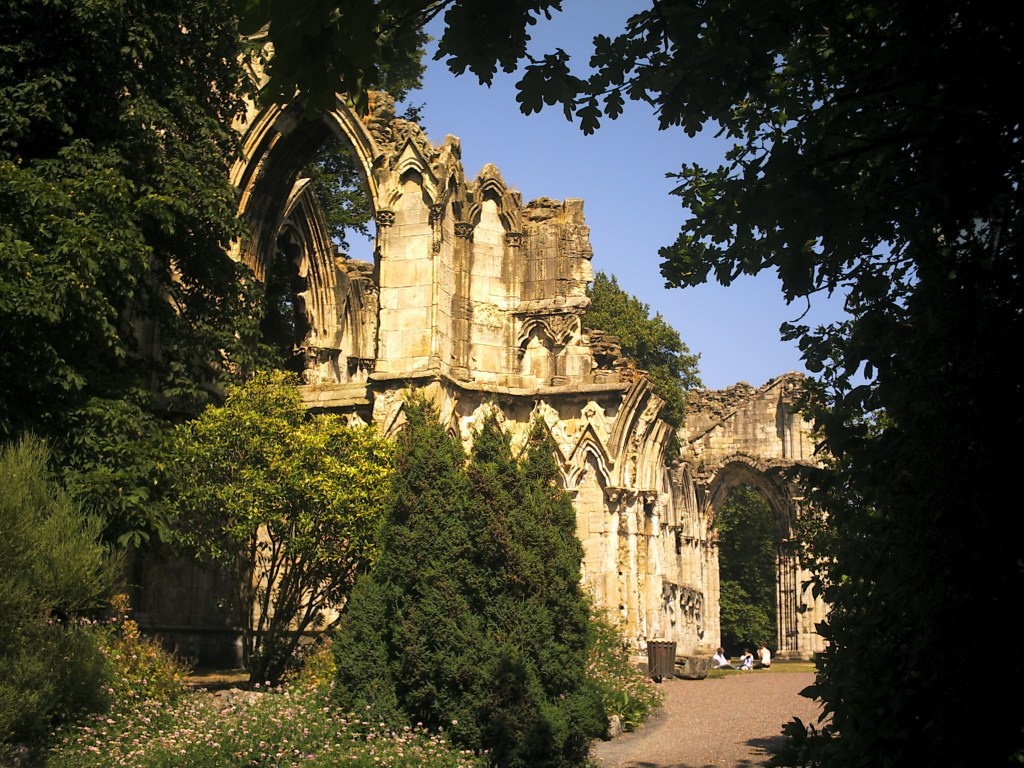 Cathedral websites in the virtual world are different from the ones we see in the real world, too. They show you not only the location of the gift shop, the café and the toilets, but also the places where you can pray quietly. That’s what we’ve come for. It’s often great to pray at the shrine of a favourite saint – like those of St Cuthbert and the Venerable Bede in Durham Cathedral. The only shrine in the Minster is that of St William of York, about whom we know nothing except that the purpose of establishing his shrine was chiefly to compete with Canterbury (who had Thomas Becket’s relics) as a centre for pilgrimage. So we pray briefly, before setting off on the 7-minute walk to St Mary’s Abbey in the Museum Gardens.