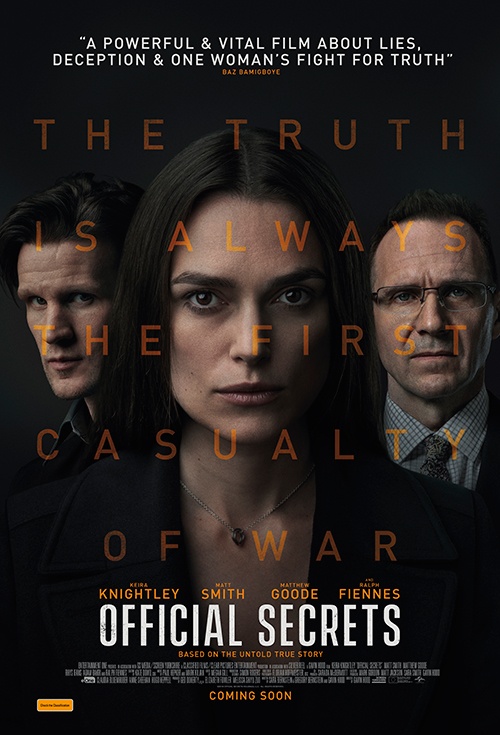 Everyone should watch the 2019 film Official Secrets, starring Keira Knightley, Matt Smith, Matthew Goode, Adam Bakri, Indira Varma, and Ralph Fiennes.
