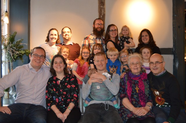 Back row: Naomi, Alex, David, Esther with Aurelia, Martha; Middle row: Matilda, Lotte, Bethan, Owen, Elsie, Libby; Front row: Tom, Annie, Paul with Jerm, Alison, Tony